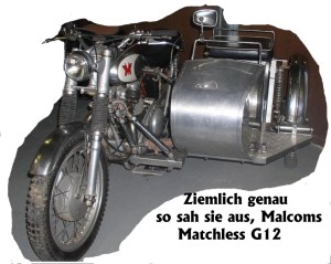 Malcolm sprang in Tregaron mit der vollen Wucht seiner 82 Kilo auf den Kickstarter der guten alten Matchless G12 und schon brachten die Kolben die 650cc zum Krachen. Da kam Freude auf. Auch bei Gwenny, die ihre weitschweifigen walisischen Formen in dem schmalen Beiwagen sorgfältig verteilt hatte und deren Rundungen sich voller Lust den kribbeligen Schwingungen hingaben. Dann röhrte das Dreigespann fröhlich wiegend nach Llanbadarn Fawr gleich neben Aberystwyth.