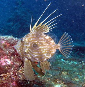 Der drollige Kerl ist jedoch nicht dumm – trotz seines schrillen Aussehens (ein Plattfisch, der aufrecht schwimmt, da lacht doch die Flunder) – und Telepathie ist sein Ding. Er kann in dir lesen wie in einem Buch. Und was er liest, gefällt ihm gar nicht. Angeekelt verzieht er sein Kussmaul (Taucher sind doch das Letzte – vor allem, wenn sie nach Castrol GTX stinken!) und wedelt ab in die Tiefe.