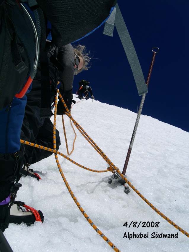 zum Gipfel des 4200 m hohen Alphubel gerobbt bin.