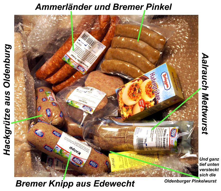 - oder 500 g Ammerländer und 500 g Oldenburger (= ungeräucherter) Pinkel